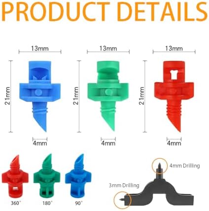 Package Includes:50pcs Blue 90° Nozzles + 50pcs Green 180° Nozzles + 50pcs Red 360° Nozzles + 1pcs Hole Drill Tool.