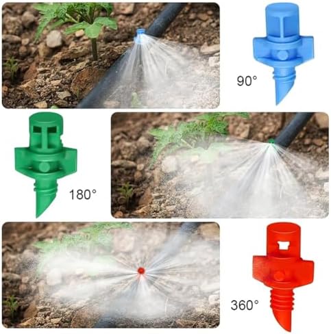 150 adjustable micro sprinklers (90°/180°/360°) for precision irrigation of plants, lawns and gardens, versatile drip emitters with mist nozzles.