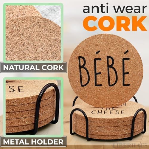 MADE FROM REAL CORK – Coasters are made of 100% natural cork. Soft and lightweight without making any noise/risk of breaking things. They won’t scratch your delicate tables and protect them from condensation and water rings. Neutral colors can match the living room decor well.