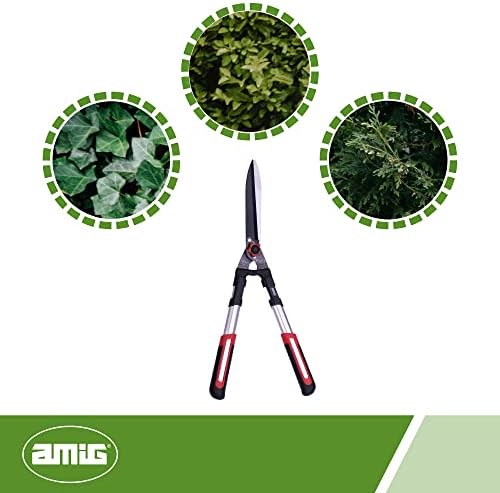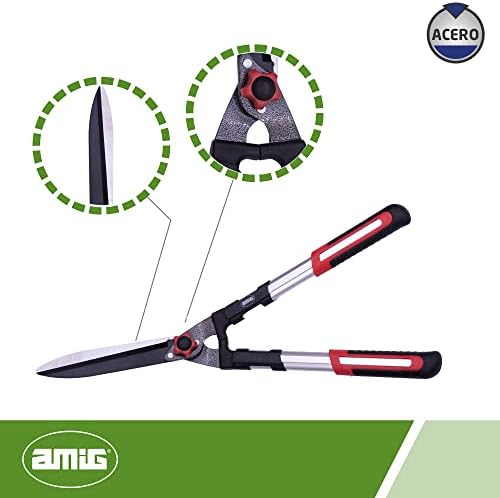 AMIG Hedge Trimmer Shears: Designed for optimal and precise cutting, this two-handed hedge trimmer features a straight edge that makes handling easier and improves precision in every cut. Ideal for modeling hedges and shrubs, this garden tool combines functionality with durability, allowing you to work comfortably and efficiently.