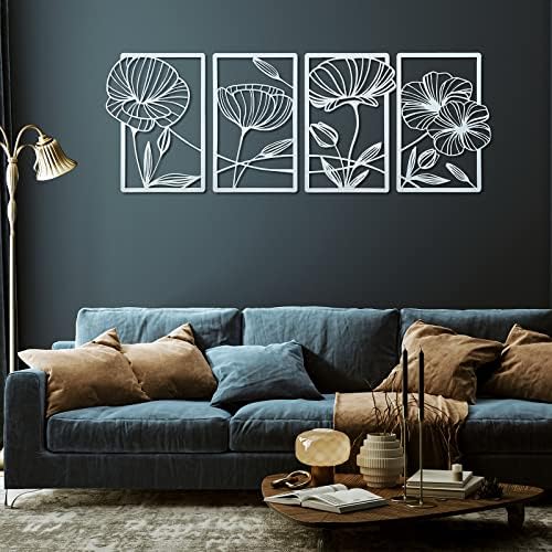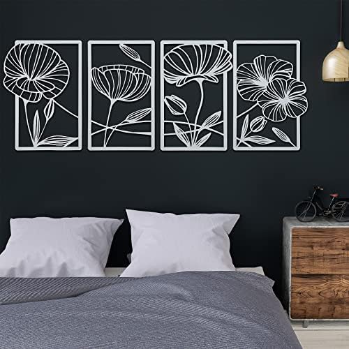 4 x Metal Minimalist Flower Wall Decor