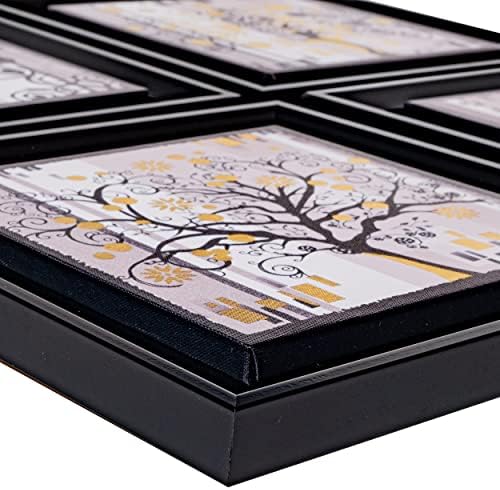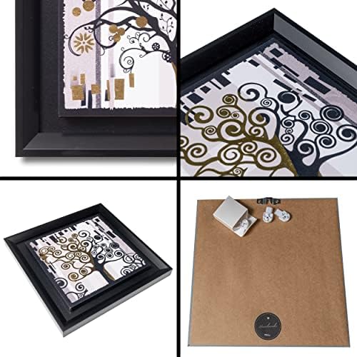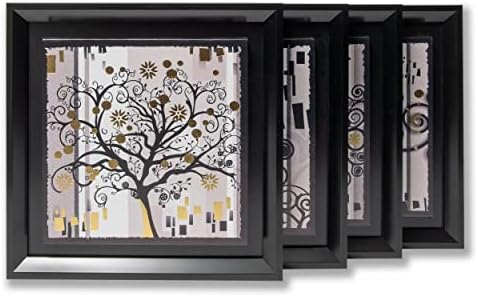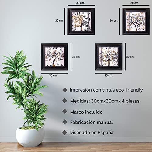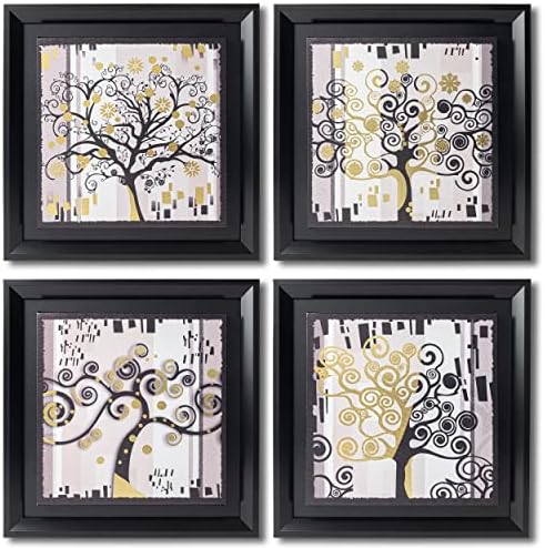 DekoArte – Modern Living Room Decor Pictures – Black Gold Tree of Life 30 x 30 cm x 4 Pieces – Set of Pictures with Black Frame.