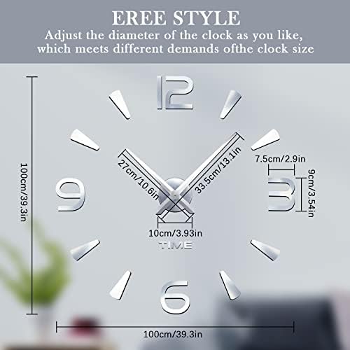DIY Fun – Acrylic large wall clocks measures 80-100cm with 3D mirror effect, easy to read. You can customize the position and size of the wall clock to your liking while enjoying the fun of installing with family and friends. With a frameless design, you can easily increase or decrease the diameter of the clock to fit different wall sizes.