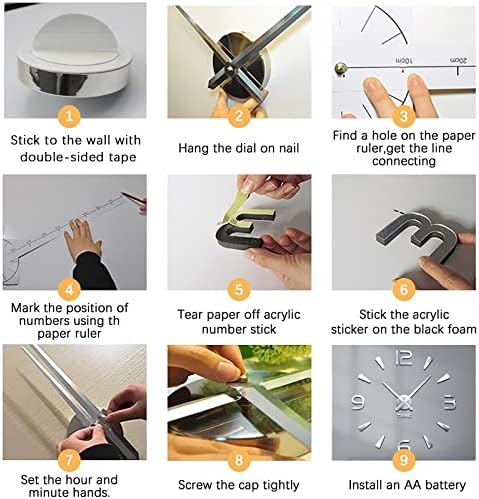 Easy to Install The 3D wall sticker clock is removable, wall decor clock comes with self-adhesive numbers and auxiliary scale ruler, easy to attach to the wall or other clean and smooth surface. The set can be fixed from 80 to 100 cm. It can be attached to the door, window and also on plastic, metal, ceramic tiles and other materials.