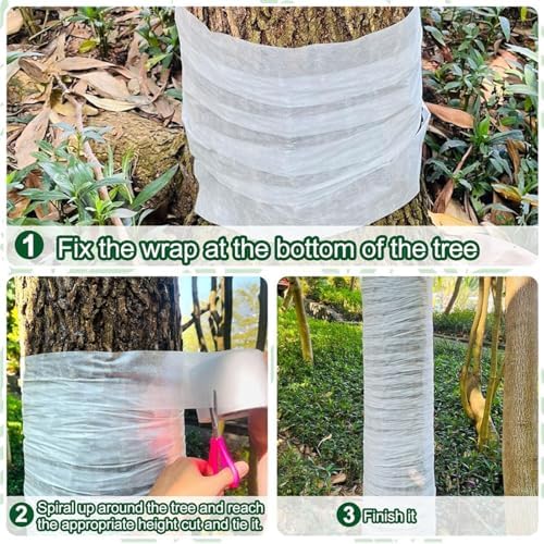 Envoltura de protección contra el frío: la envoltura protectora para árboles proporciona un aislamiento térmico eficaz para proteger los árboles de las heladas invernales y las lesiones por congelación, asegurando su salud en climas fríos duros con su material de tela no tejida duradero que es ideal para jardineros que protegen los árboles jóvenes durante los meses más fríos del año