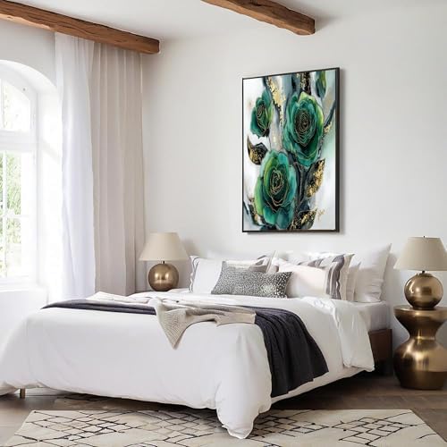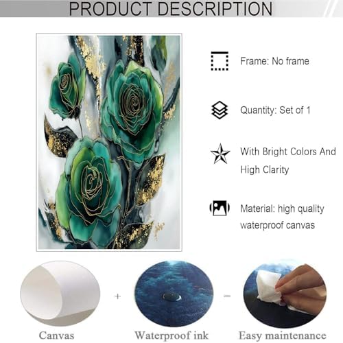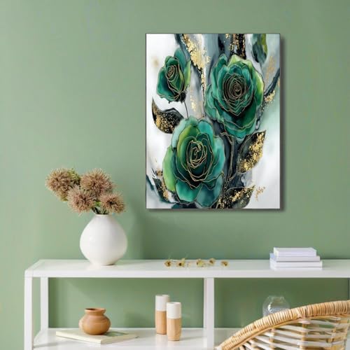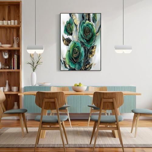 GDJSMIN Decorative Wall Art Elegant Floral Pattern for Pictures Living Room Decoration – Pink Green Luxurious Posters for Walls Decorative Pictures Wall Decoration – 80 × 120 cm – Emerald Green