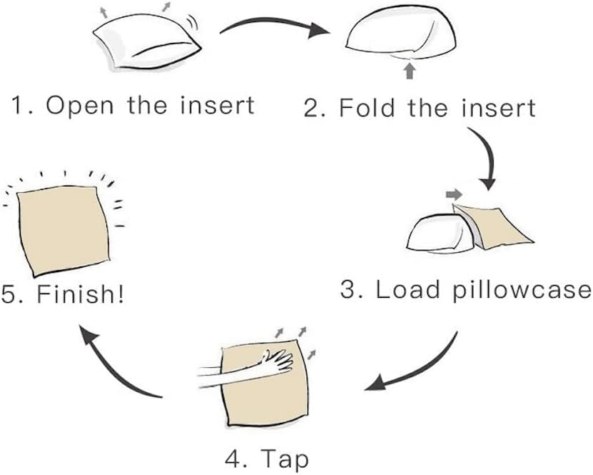 To use: you will need to purchase an insert (not included) for the pillowcase. Use an 18″ x 18″ insert for a natural look or 20″ x 20″ for a super plump look. To insert the inside: unzip the cushion cover and fold the inside in half. Place the inside inside the case and unfold once inside. Push the edges out, zip up and tap the cushion down to even out the padding. Voila!