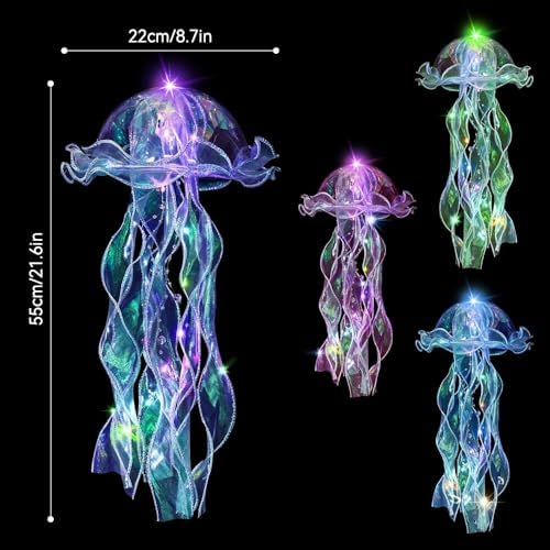 Unique Design Our jellyfish lights are shaped like jellyfish, the unique appearance creates a stunning visual effect. Elegant in shape and rich in color, bringing these beautiful sea creatures to life in your home or party, attract children’s attention.