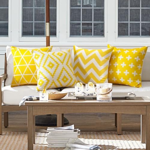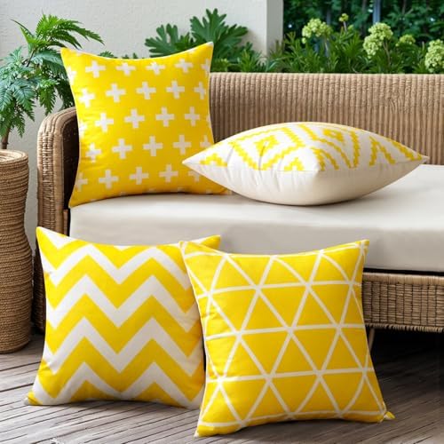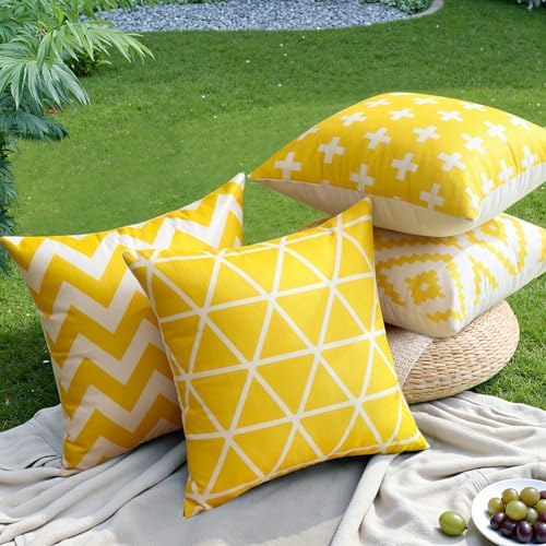 【Waterproof Material】The cushion covers are made of soft polyester, comfortable to touch and place. 4 pieces 45 x 45 cm / 18 x 18 inch cushion cover of each package, NO PILLOW INSERTS INCLUDED. Dust proof material is available for outdoor applications in garden, patio, pool fence