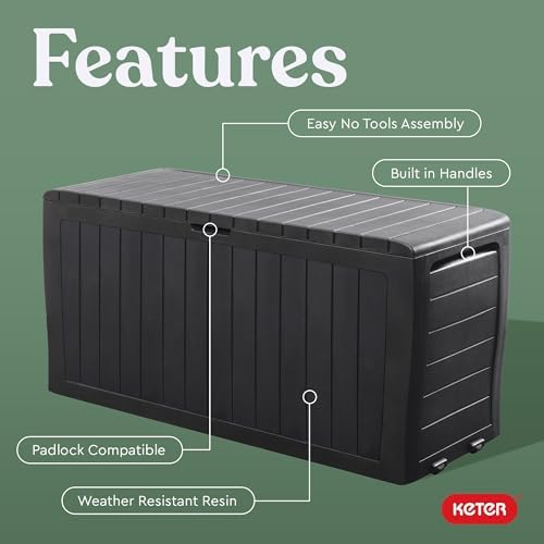 Keter Marvel Plus 71 Gallon Resin Box – Organization and Storage for Patio Furniture, Outdoor Cushions, Pillows, Garden Tools and Pool Toys, Dark Gray