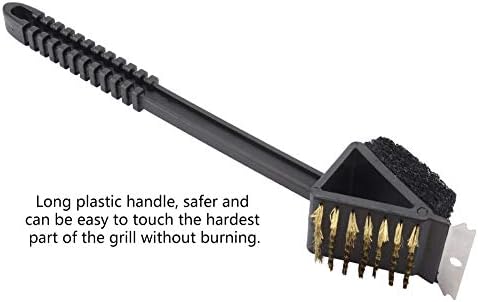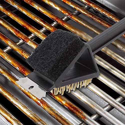 THREE IN ONE CLEANING EFFICIENCY – This BBQ grill brush combines a wire brush, scraper and cleaning tool into one convenient design. The three-in-one feature makes it easier to tackle all parts of your grill, ensuring thorough cleaning with just one tool. It is designed to be effective at removing stubborn from grids and s, providing a comprehensive cleaning solution that saves time and effort.