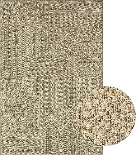 Mias Teppiche Kinsley Natural Jute Indoor Outdoor Rug Weather Resistant Patio Garden Rug