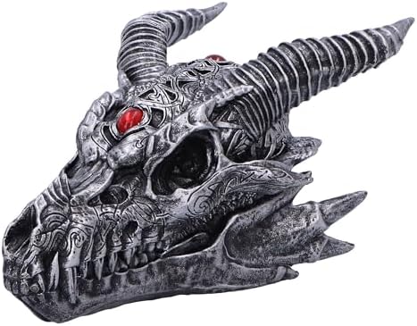 QUALITY CRAFTSMANSHIP – Made of the finest resin and meticulously hand-painted, the silver dragon skull is a testament to quality craftsmanship, ensuring durability and detailed aesthetic appeal.