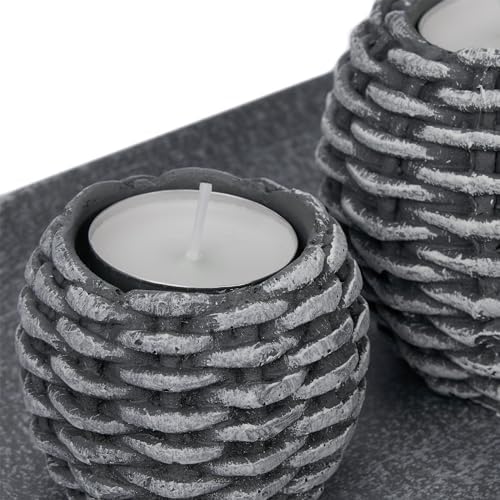 ELEGANT – Modern candle holders with decorative tray in understated grey bring calm and harmony