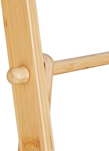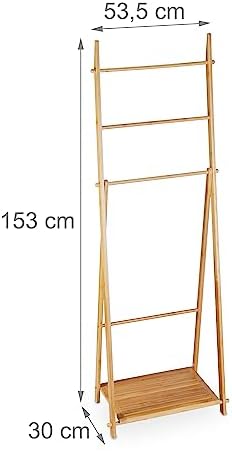 Medidas: 153 x 53,5 x 30 cm aprox. (alto x ancho x fondo) Medidas plegado: 153 x 53,5 x 7 cm aprox. Peso: 2,5 kg aprox. Material: bambú Color: natural Ancho 2 barras superiores: 46,5 cm aprox. Ancho 2 barras inferiores: 43,5 cm aprox. Medidas balda: 43,5 x 29,5 cm aprox. (ancho x fondo)