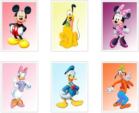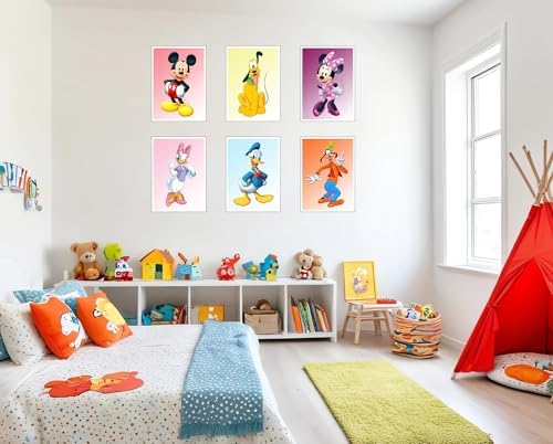 Set of 6 Wooden Paintings, Living Room Decoration, Modern, Bedrooms, Bedroom, Children, Mickey, Daisy, Pluto, Goofy, Donald, Minnie with Metal Hangers, (38 x 29 cm Each Picture)