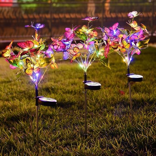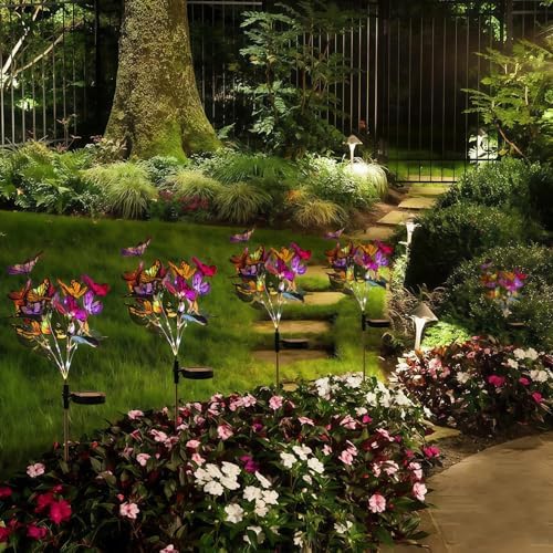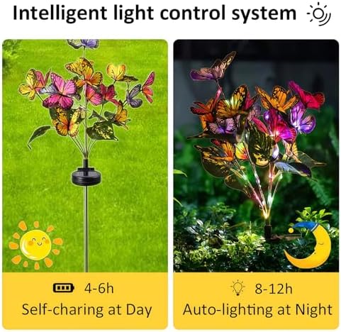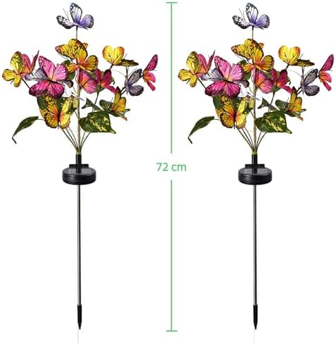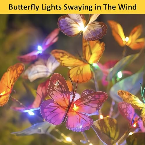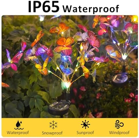 UNIQUE BUTTERFLY SOLAR GARDEN LIGHTS – The 2 pack stake lights is composed of 34 realistic butterflies and 44 LED fairy string lights. Butterflies are made of high quality fabric and exquisitely designed to imitate real butterflies, adding much vitality to your garden or yard.