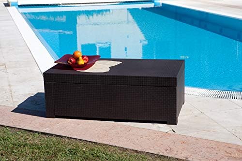 Baúl de jardín de alta calidad y diseño moderno de resina con trenzado similar al ratán.
