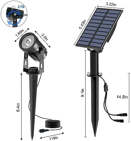 🌈【Split Design & Easy to Use】 The solar panel and solar lights outdoor garden are separated, connected by wires, and can be installed in different places, so you can install the spotlight anywhere, even if there is no direct sunlight.
