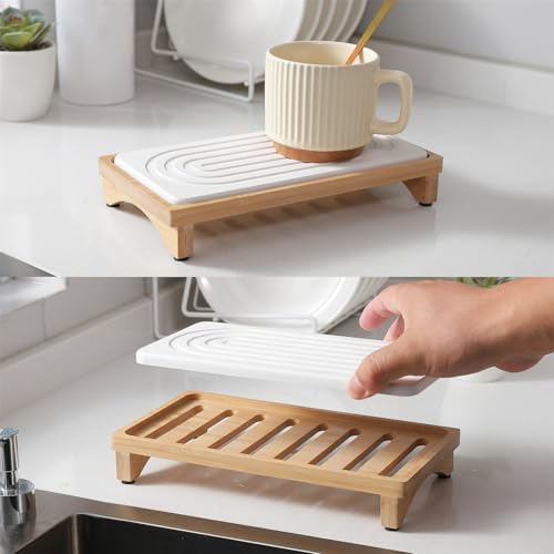 Natural bamboo construction with superior water absorption keeps countertops dry and clean in kitchens and bathrooms