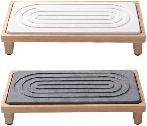 Sturdy and mold resistant wood with a stone textured tray design ensures plenty of use and organized storage